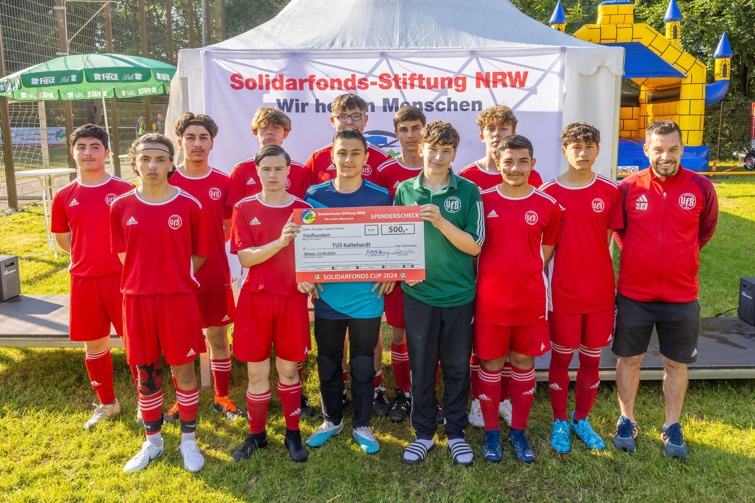 Ebenso gelungen wie die Premiere im Jahr 2023 war der Solidarfonds-Cup im September 2024. Am Start waren bei herrlichem Sommerwetter neben dem Ausrichter TuS Kaltehardt die Vereine VfB Börnig (Herne), FC Wellinghofen (Dortmund), SG Welper (Hattingen), TuS Stockum (Witten), Hellweg Lütgendortmund, FSV Gevelsberg und FC Herdecke-Ende.