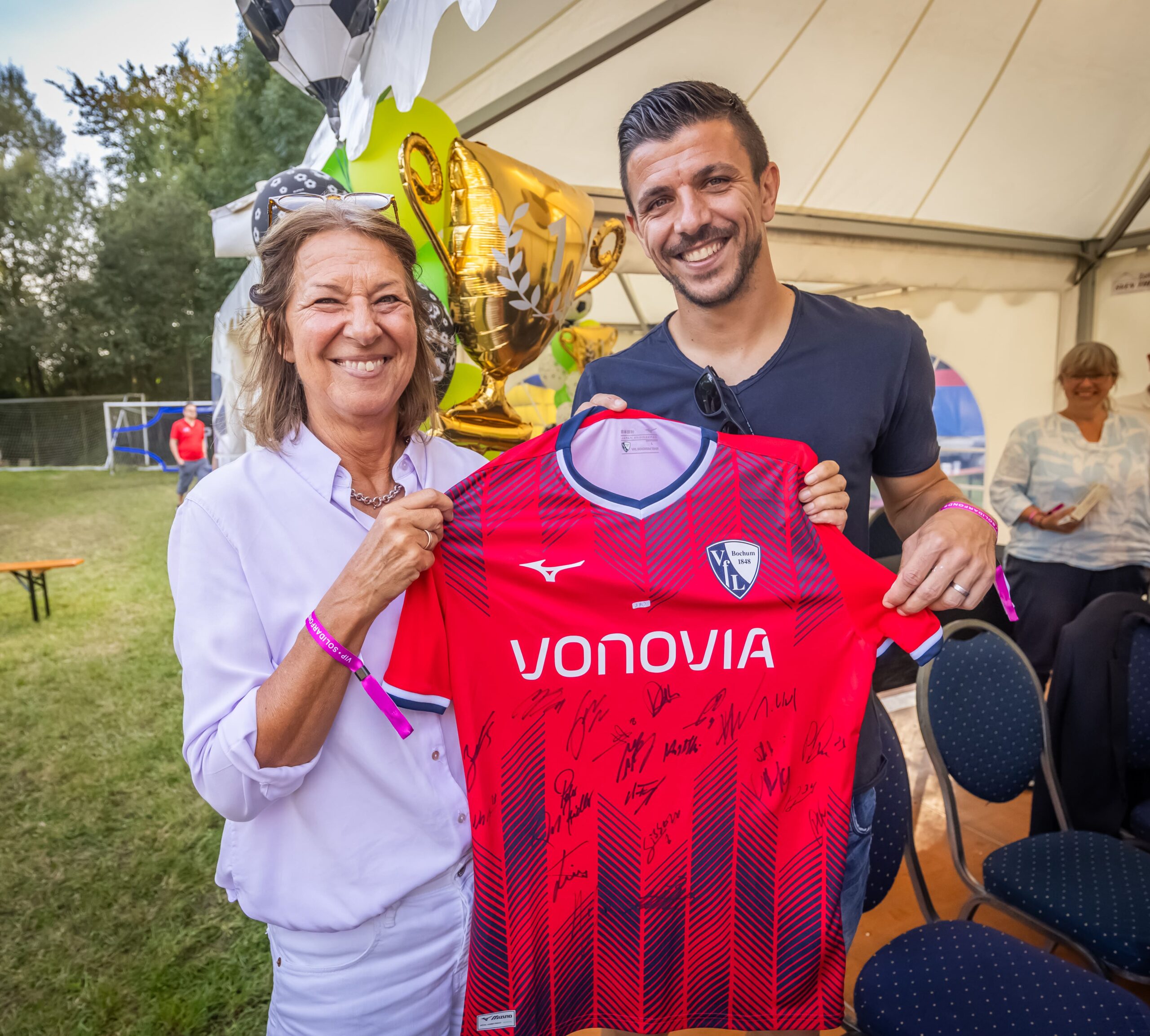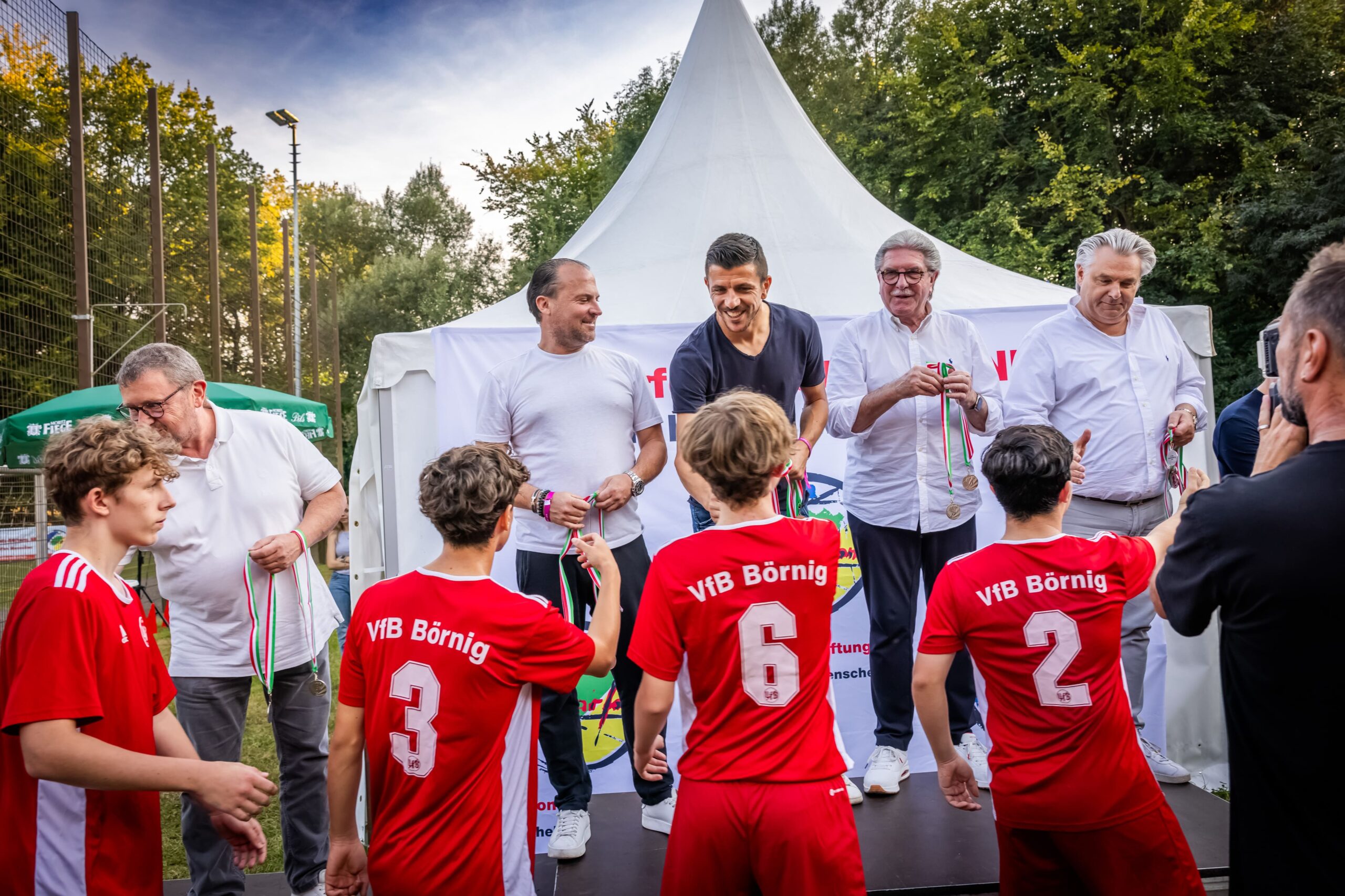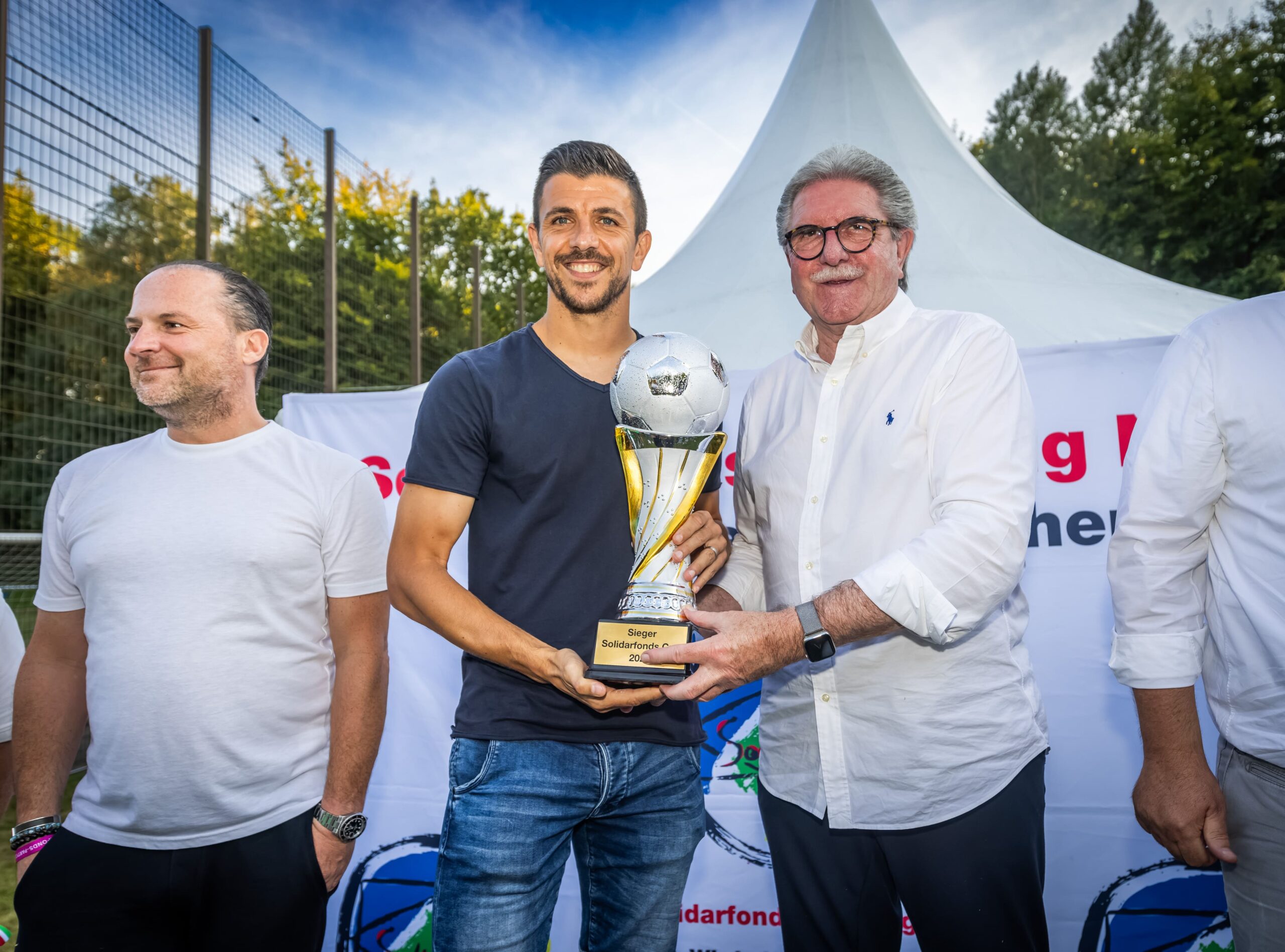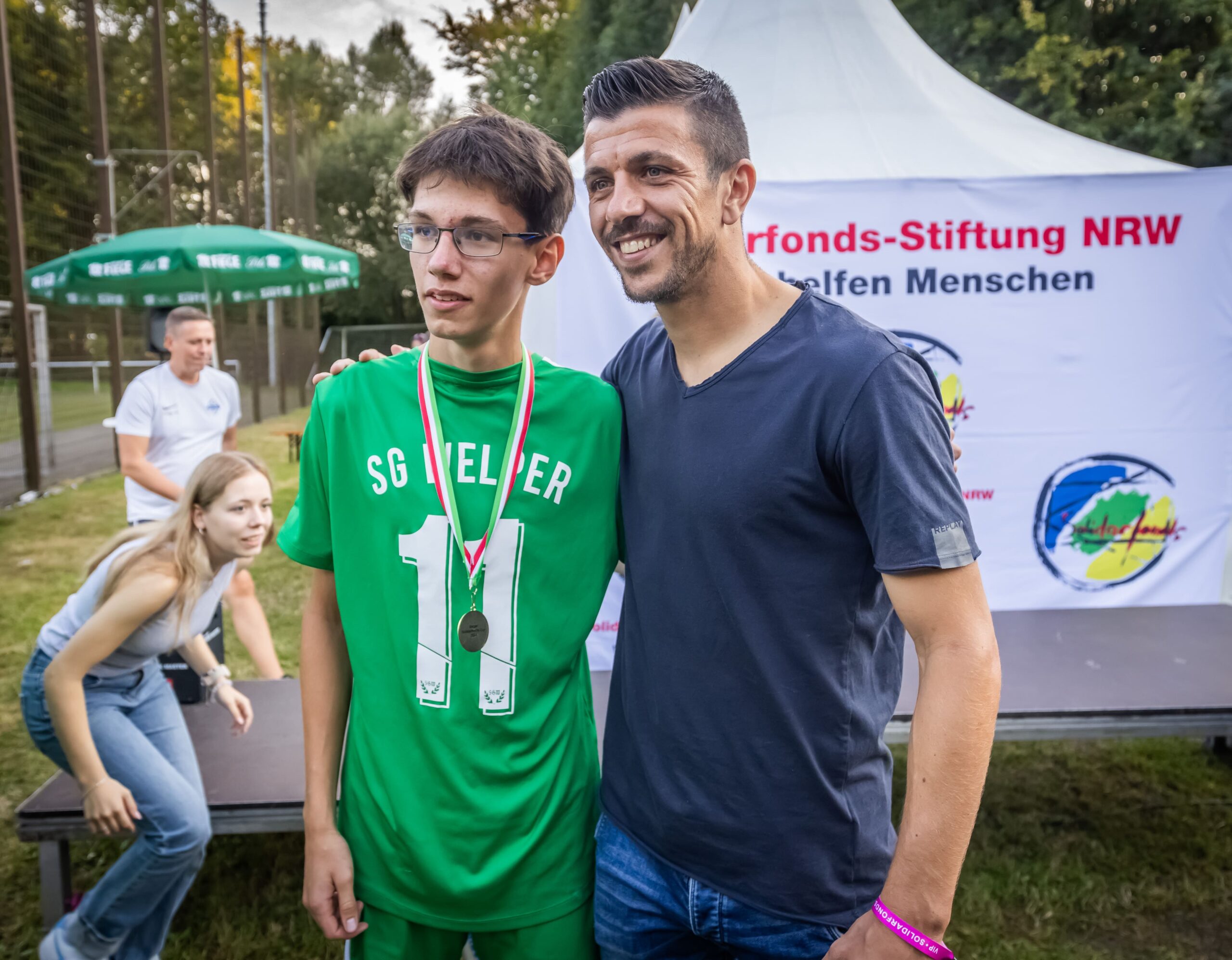 Schluss- und Höhepunkt: Die Siegerehrung übernahm Anthony "Toto" Losilla, Kapitän des Fußball-Bundesligisten VfL Bochum. Er übergab den prächtigen Pokal an die Mannschaft der siegreichen SG Welper. Den zweiten Platz des Turniers belegte der VfB Börnig. Für „Toto“ Losilla war es die Premiere für die Solidarfonds-Stiftung NRW: und das gleich mit einem bewegenden „Heimspiel“.