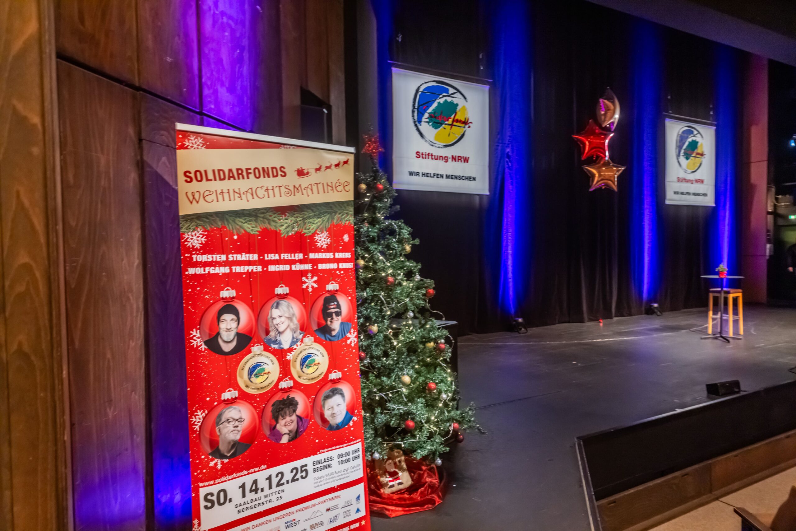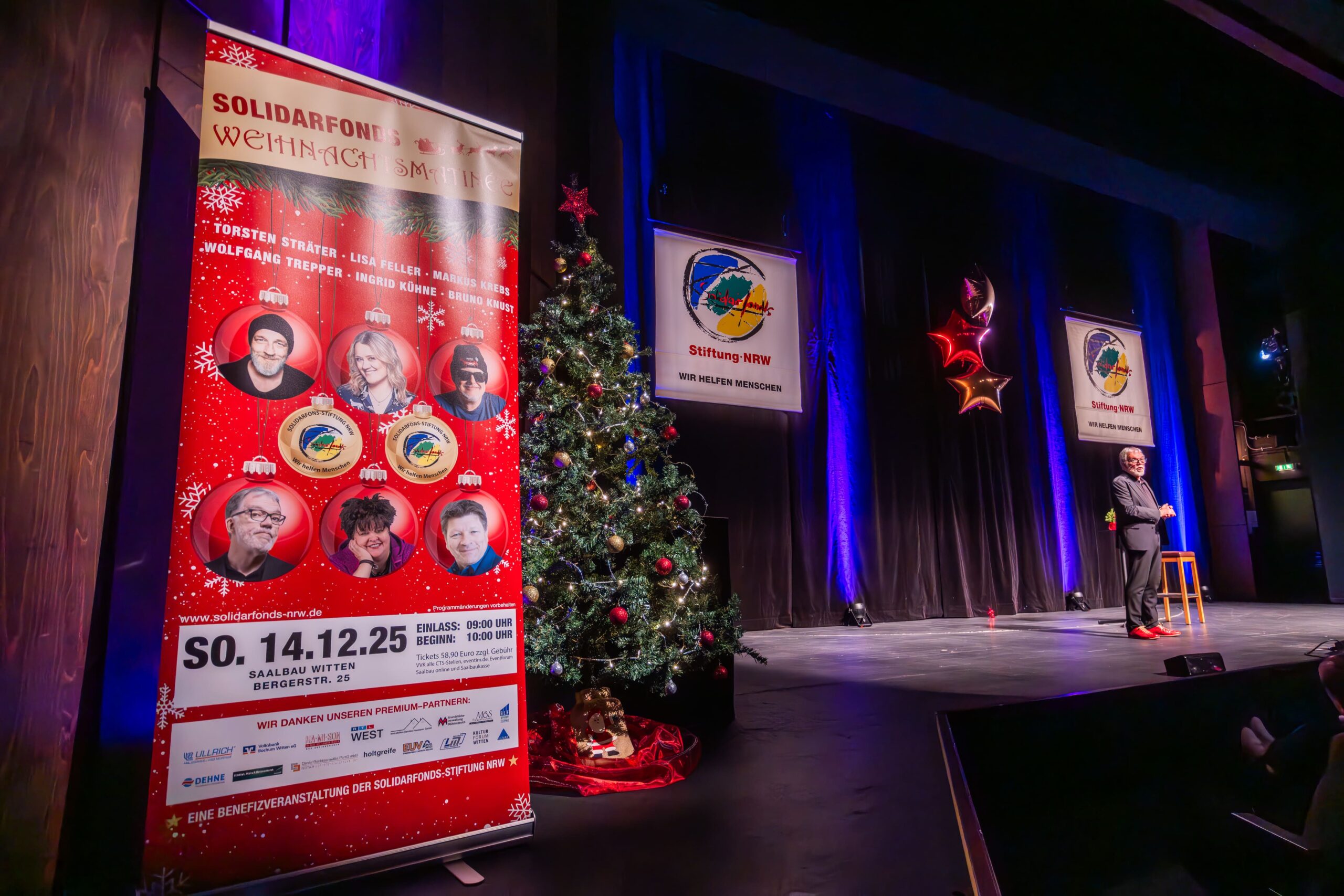 „Lasst uns froh und munter sein“, heißt es am Sonntag, 14. Dezember, im Saalbau Witten. Zum 15. Mal präsentiert die Solidarfonds-Stiftung NRW ihre traditionelle Weihnachtsmatinee. Nach den umjubelten „Fünferpacks“ in den Vorjahren stehen erstmals sechs der beliebtesten deutschen Comedians für die Stiftung auf der Bühne, um die Bildungs- und Sozialprojekte für benachteiligte Kinder und Jugendliche zu unterstützen.
