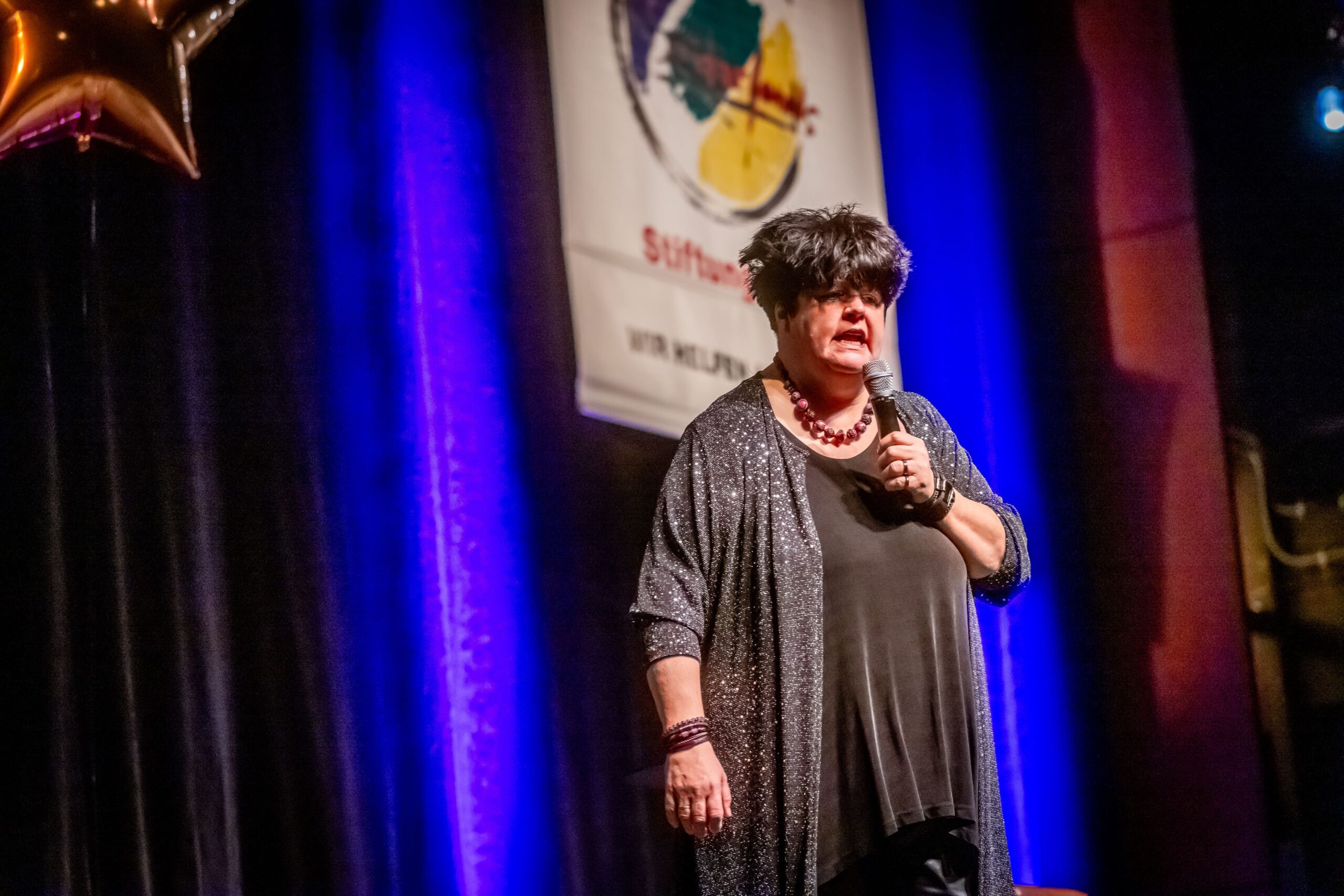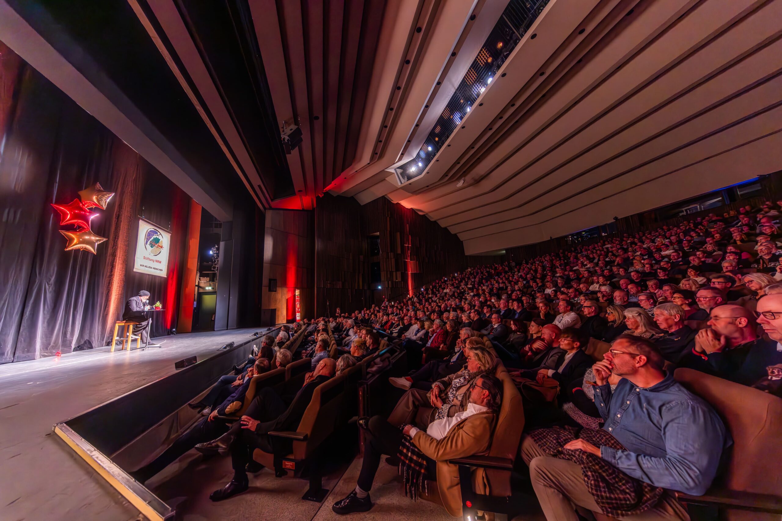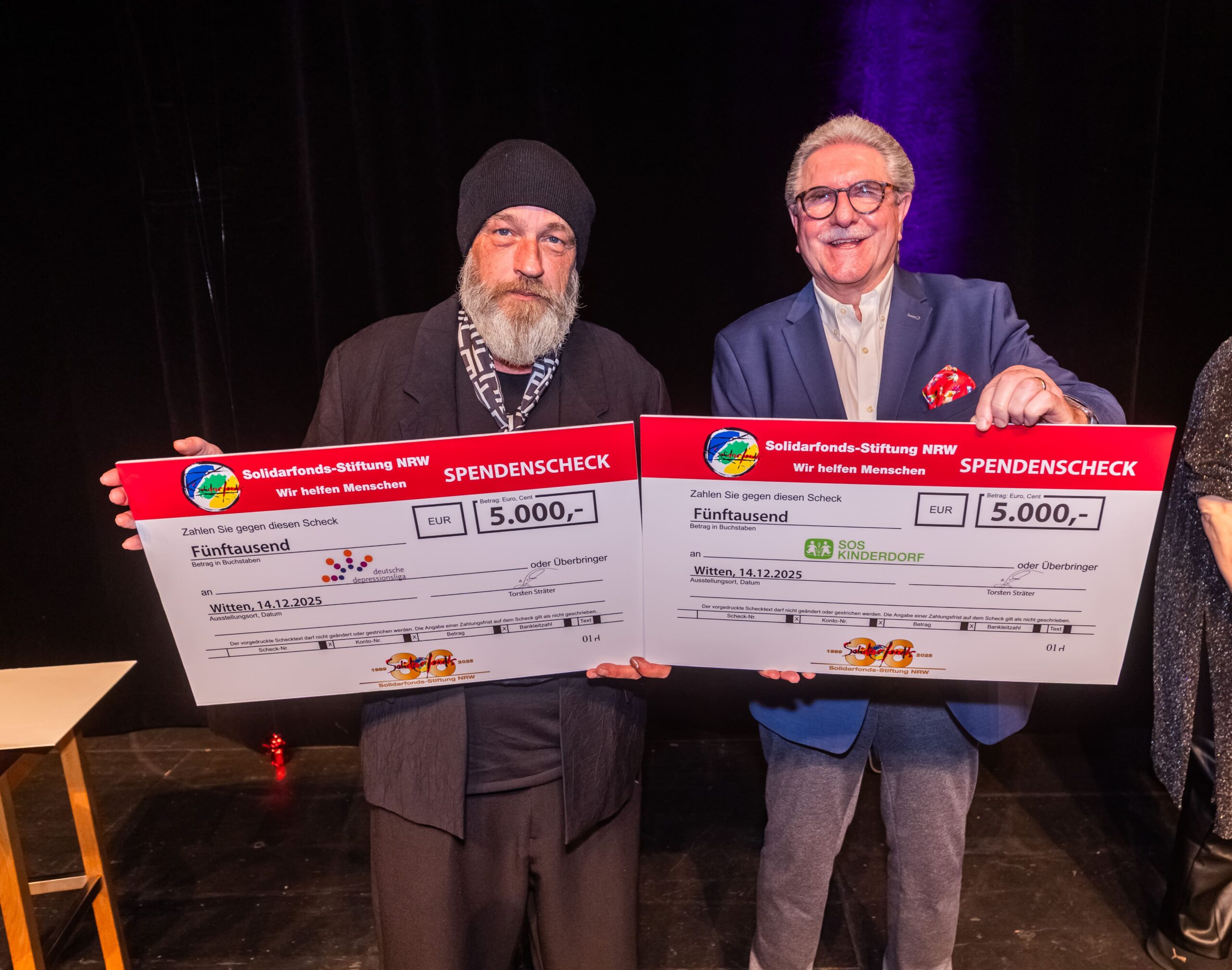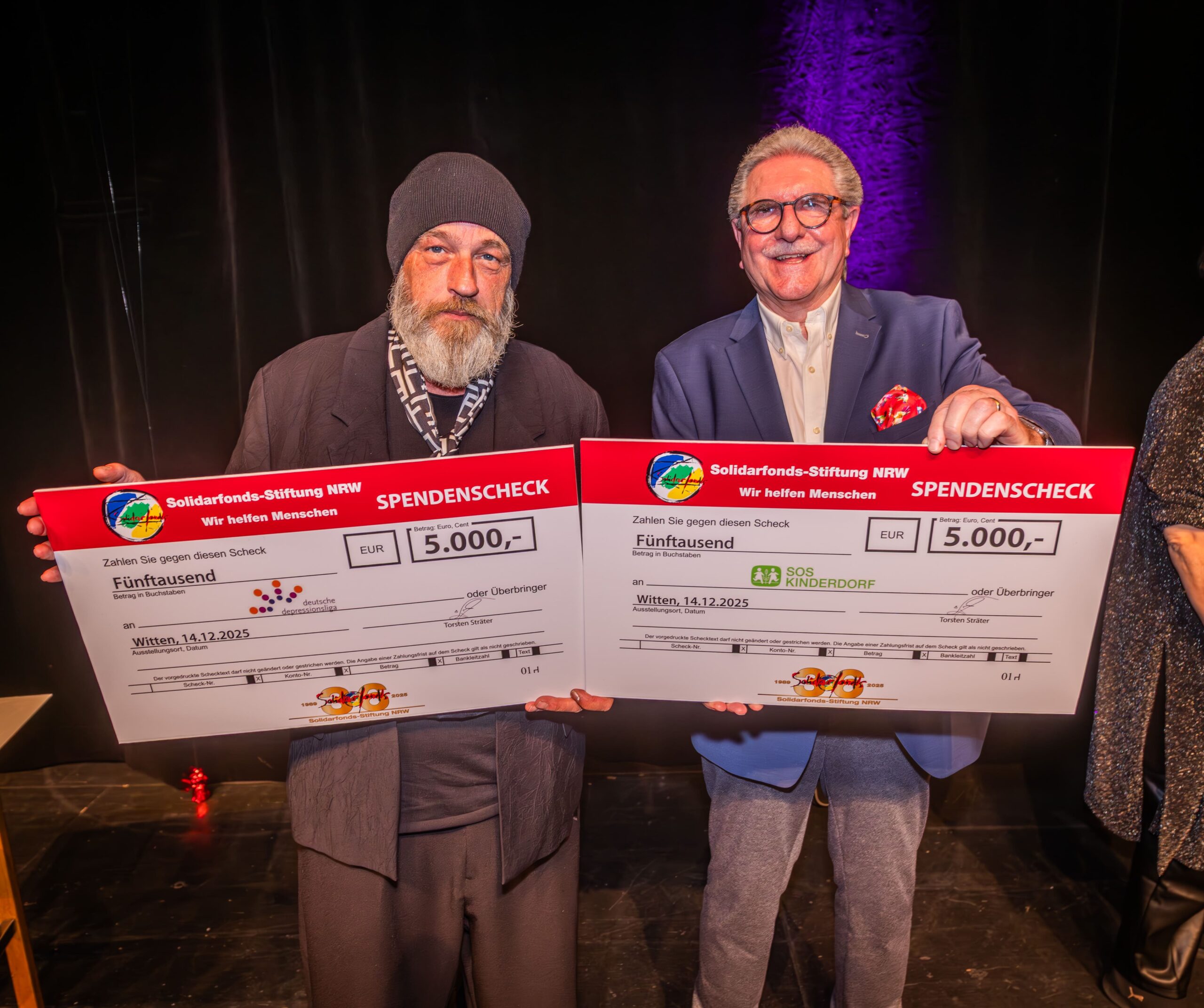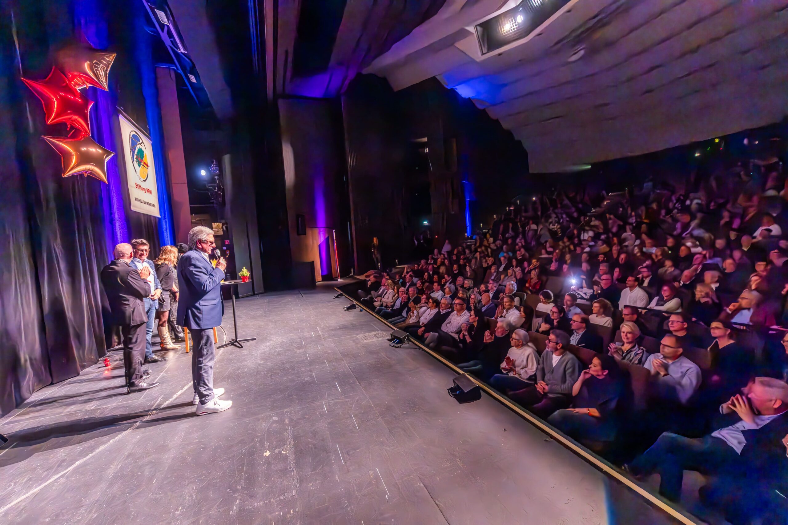Zum Finale wurde es feierlich: Dr. Michael Kohlmann überreichte mit dem Schlagersänger und Stiftungs-Vorstandskollegen Olaf Henning die Goldene Comedy-Krone an Wolfgang Trepper. Der Preis wurde zum zweiten Mal für besondere Verdienste für die Solidarfonds-Stiftung NRW verliehen. Erster Preisträger war 2024 Torsten Sträter.