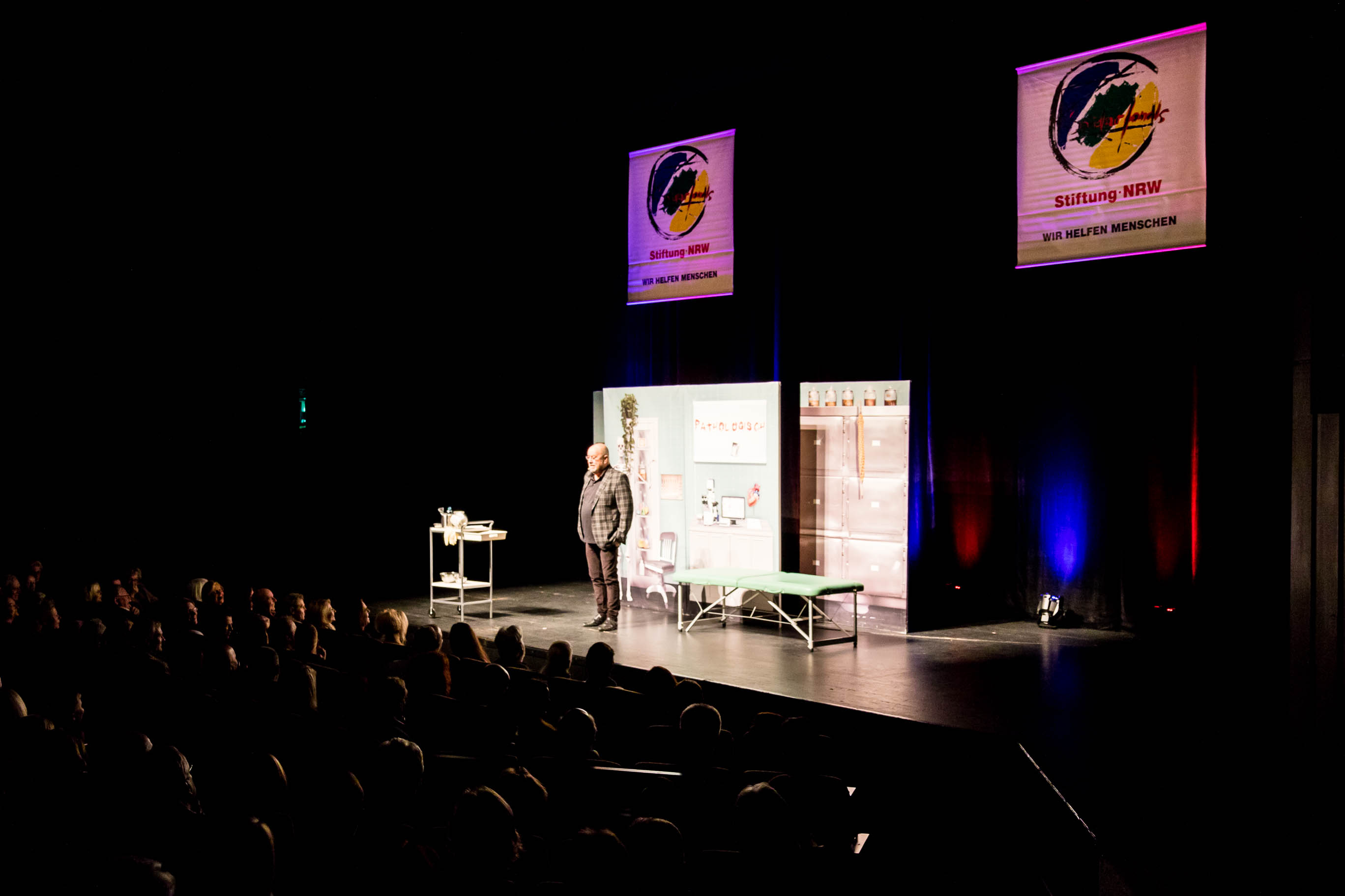 Der 68-Jährige – der gemeinnützigen Stiftung als Vorsitzender des Kuratoriums seit über zwölf Jahren eng verbunden – hat zwar seinen Abschied vom Tourneebetrieb angekündigt. Sein aktuelles Programm „Pathologisch“ bezeichnet er als „das definitiv letzte“. Für den Solidarfonds jedoch machte sich der Doktor noch einmal auf den Weg in unsere Stadt: sehr zur Freude der Zuschauer, die Dr. Stratmann trotz der für Künstler ungewohnt frühen Stunde in Hochform erlebten.