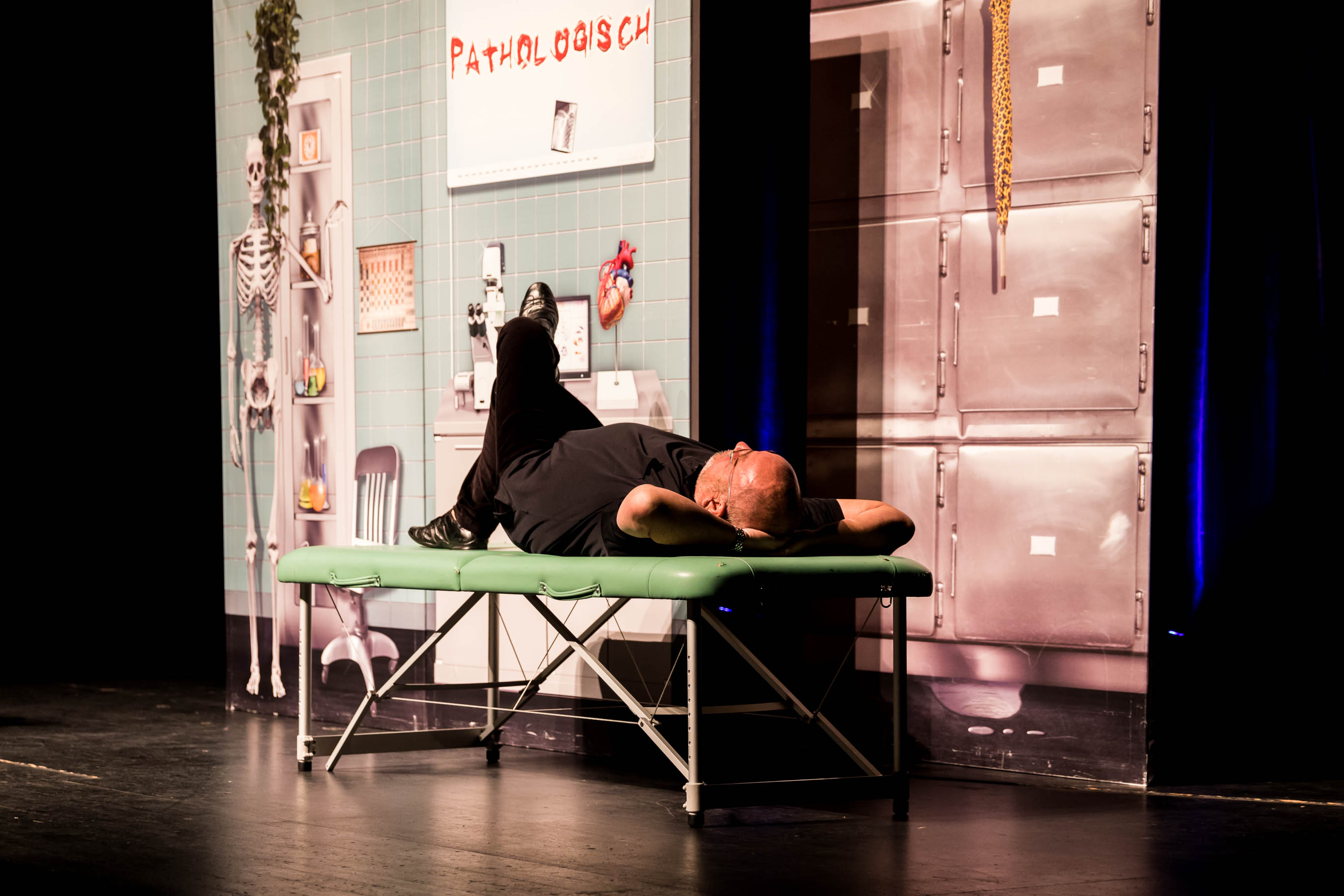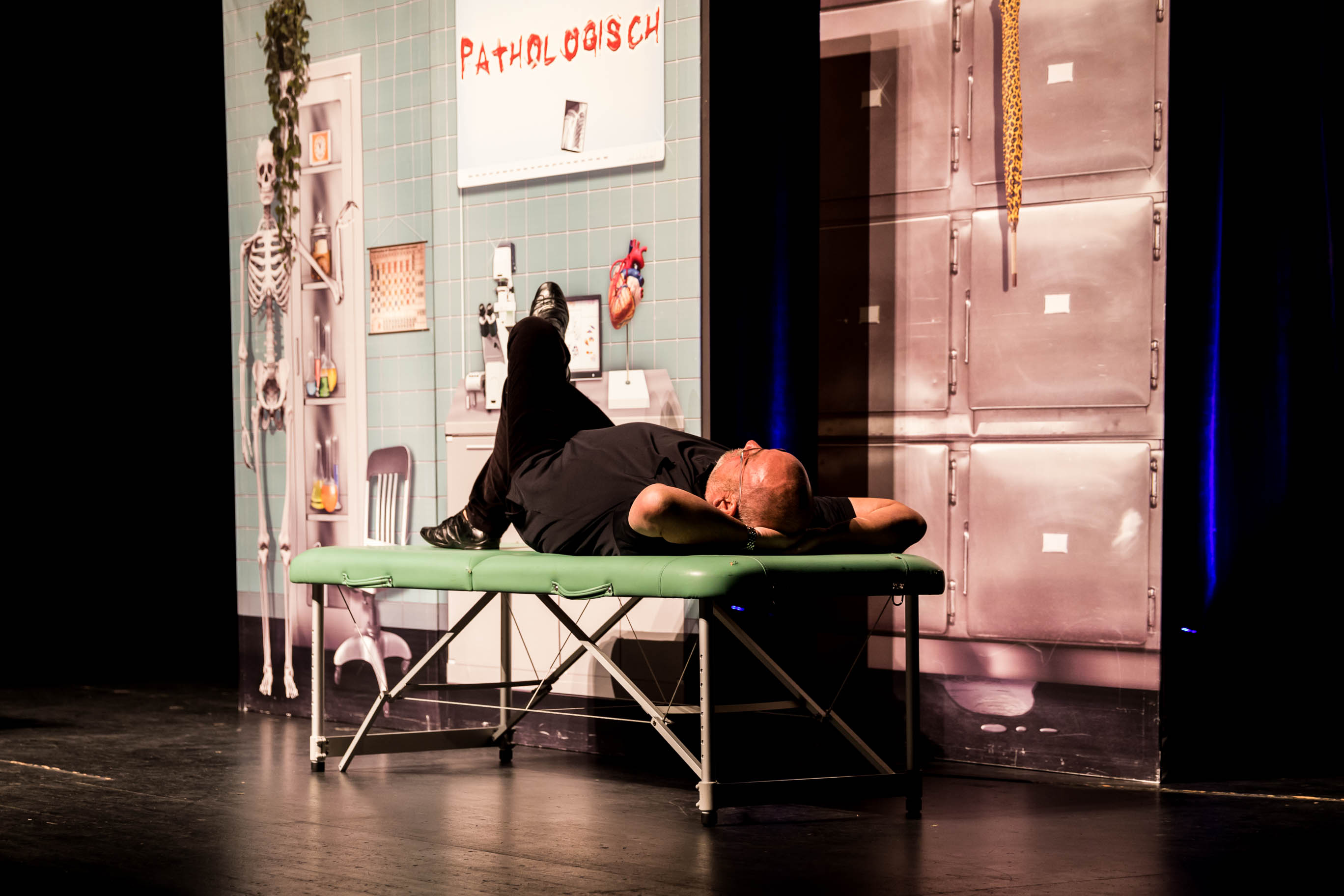 Schauplatz ist die Pathologie: „beim einzigen Arzt, wo du ohne Wartezeitendrankommst.“Einmal mehr glänzt der Comedy-Doc als Alter Ego Jupp, der Genitiv und Dativ zwar kennt, aber ausschließlich nach dem Zufallsprinzip einsetzt. Dabei ist Jupp längst von uns gegangen, umgenietet von einem Zwölf-Tonnen-Stauder-Bierwagen.